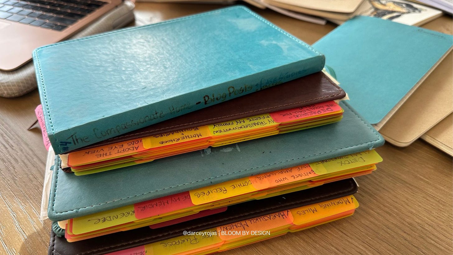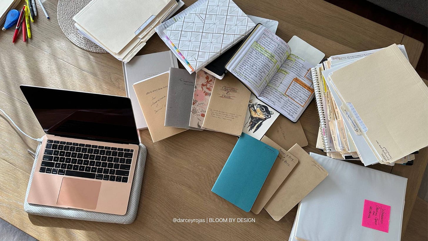 Eventually, I also started experimenting with keeping smaller journals, 3-ring binders, and manilla file folders for specific topics or projects of focus, too. I have file folder bins and binders specific to my website design and research, each course I’ve been developing, and one for each manuscript in development.