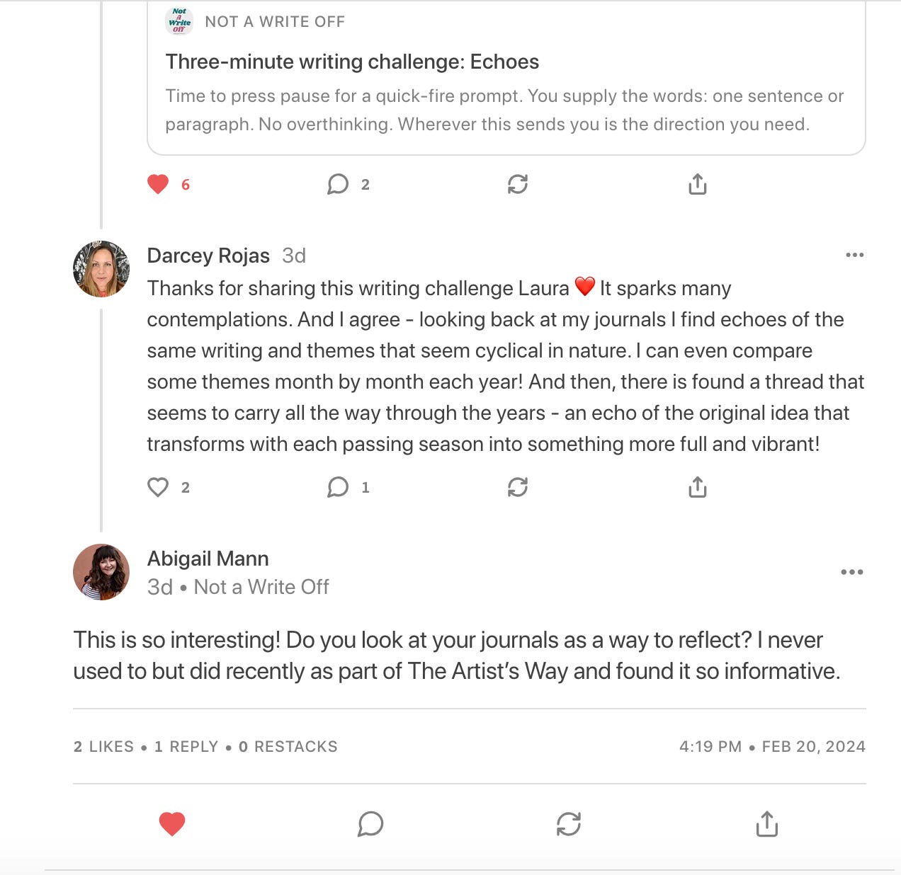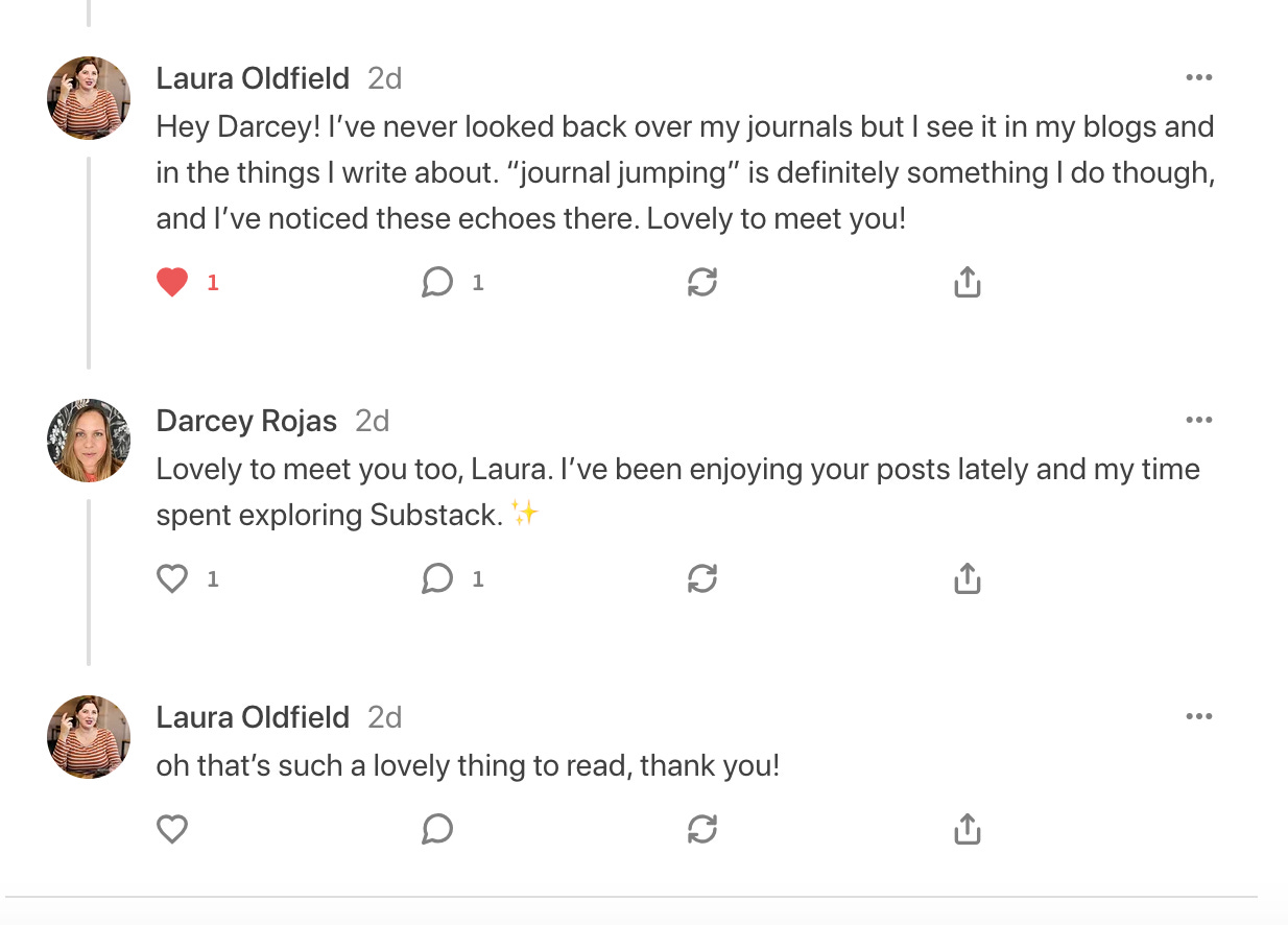 Lately, I’ve also come across a lot of Substack comments & posts about journaling, too.